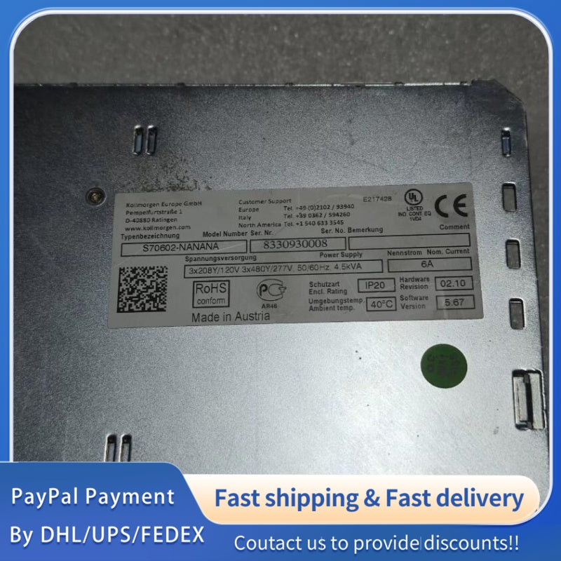 Part Number: S70602-NANANA; Product Name: Kollmorgen Servo Drive S70602-NANANA